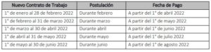En la siguiente imagen, podrá identificar el mes para postular, según la fecha en la que fue firmado el nuevo contrato: