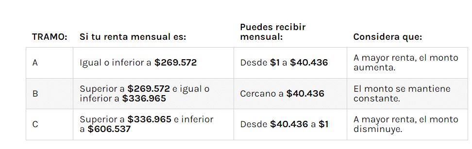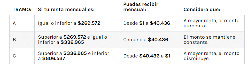 • El Bono Mujer Trabajadora se paga en base a tres tramos de acuerdo al sueldo bruto de la beneficiaria.