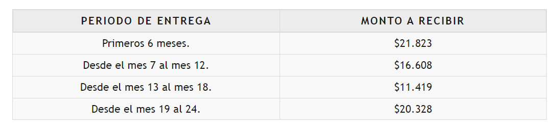 El monto del beneficio varía según el periodo de ejecución del Apoyo Psicosocial (APS) y se detalla a continuación: