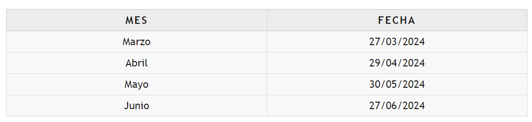 Para conocer las próximas fechas de pago, te las proporcionamos a continuación:
