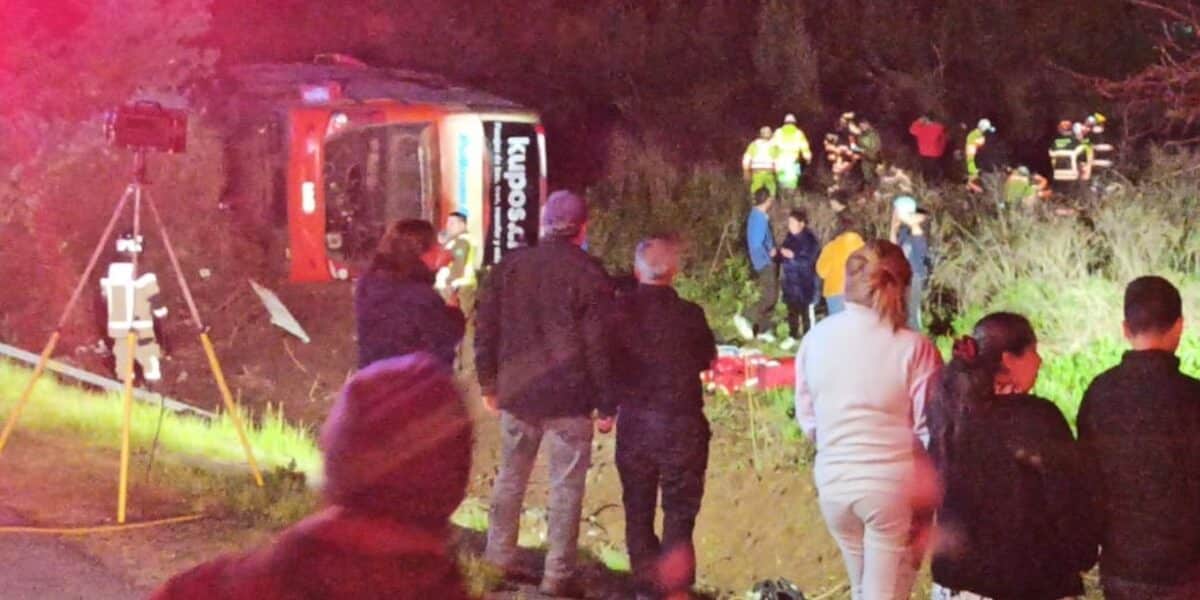 28 Septiembre, 2024 Bus con destino a Puerto Montt vuelca y deja una docena de lesionados Un bus volcó en la Ruta 5 Sur en la región de Ñuble, dejando varios lesionados y causando interrupciones en el tráfico vehicular. Central Noticia