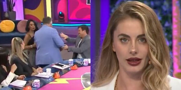 En ese momento, el humorista se acercó para felicitarla y tomó su rostro para besarla.
