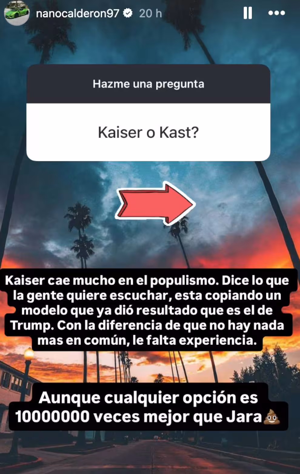 “Aunque cualquier opción es 10.000.000 veces mejor que Jara”, escribió el influencer, generando reacciones inmediatas entre sus seguidores por lo tajante de su afirmación.
