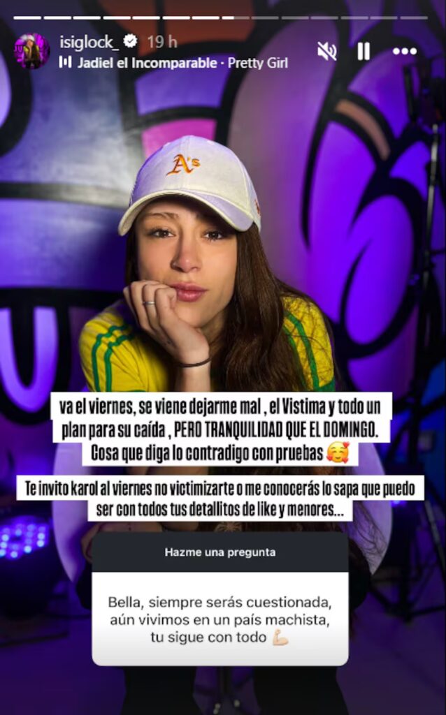 La joven fue aún más lejos, advirtiendo: “Te invito, Karol, al viernes no victimizarte o me conocerás lo sapa que puedo ser con todo tus detallitos de Like (Media) y menores…”.