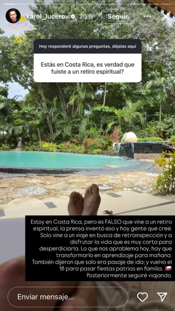Karol Lucero aclaró los rumores sobre un supuesto retiro espiritual en Costa Rica y reveló el verdadero motivo de su viaje.
