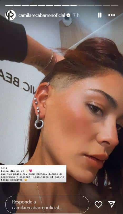 Esta vez, Recabarren decidió mostrar su más reciente cambio tras pasar por la peluquería. En sus historias de Instagram, compartió con entusiasmo su nuevo estilo: los costados rapados y un cabello rojizo luminoso que llega hasta los hombros.