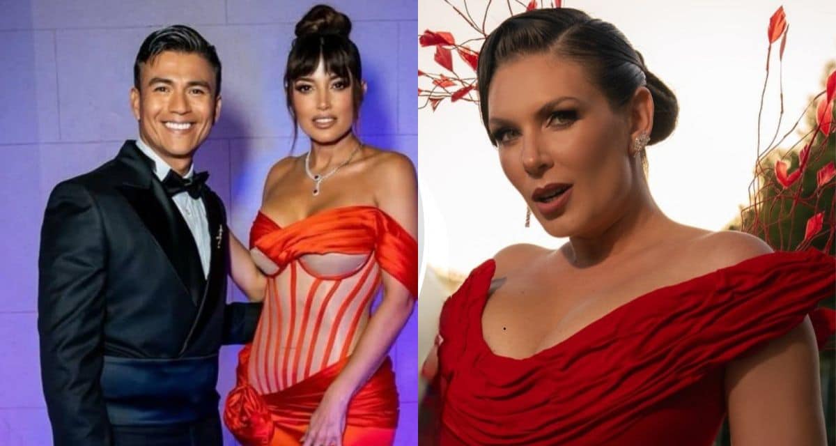 Mientras abordaba la situación de Yamila Reyna y Américo, Eugenia Lemos también captó miradas por su elegante paso por la alfombra roja. La modelo desfiló junto a su esposo Matías Kosznik, luciendo un vestido rojo intenso de inspiración Old Hollywood.